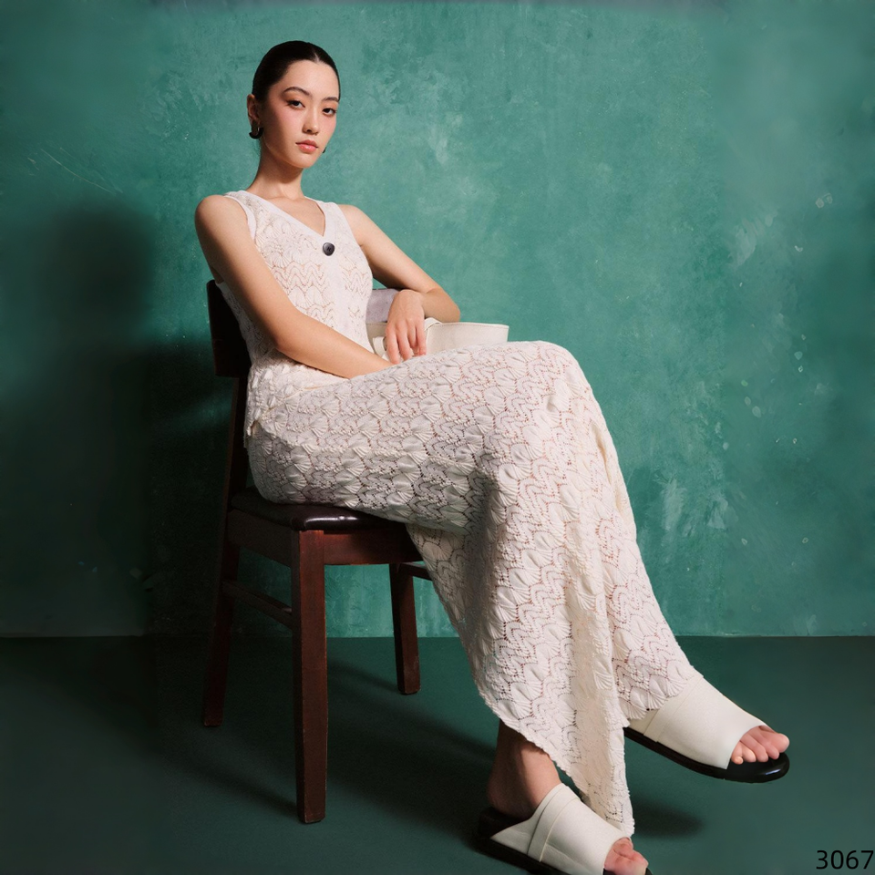 Ensemble deux pièces en tricot crochet pour l'été : débardeur peplum à col en V et jupe longue taille haute à ourlet festonné et fente latérale pour femme