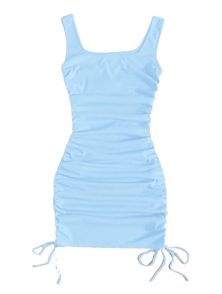 Robe gilet côtelée d'été avec cordon de serrage plissé jupe élastique à la hanche