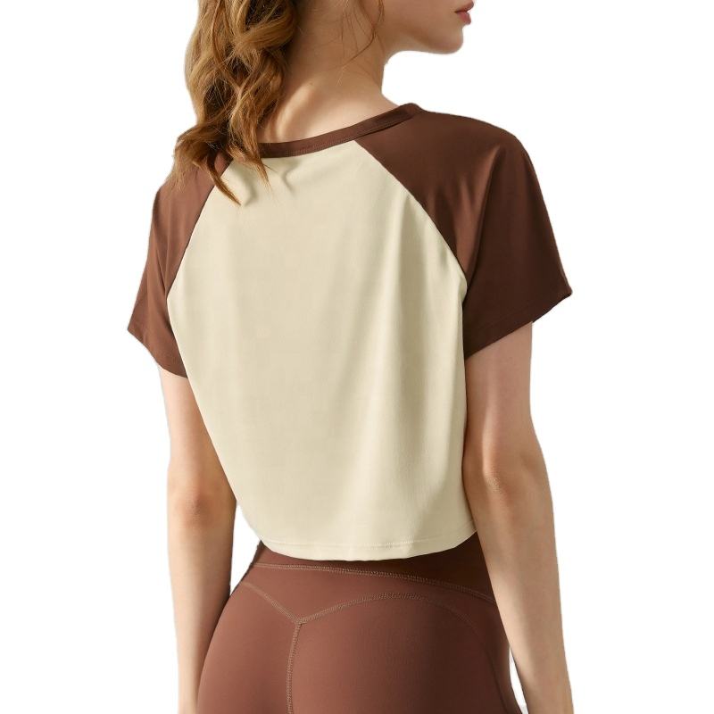 Été court couleur contraste running top lâche séchage rapide manches raglan yoga chemises manches t-shirt fitness chemises