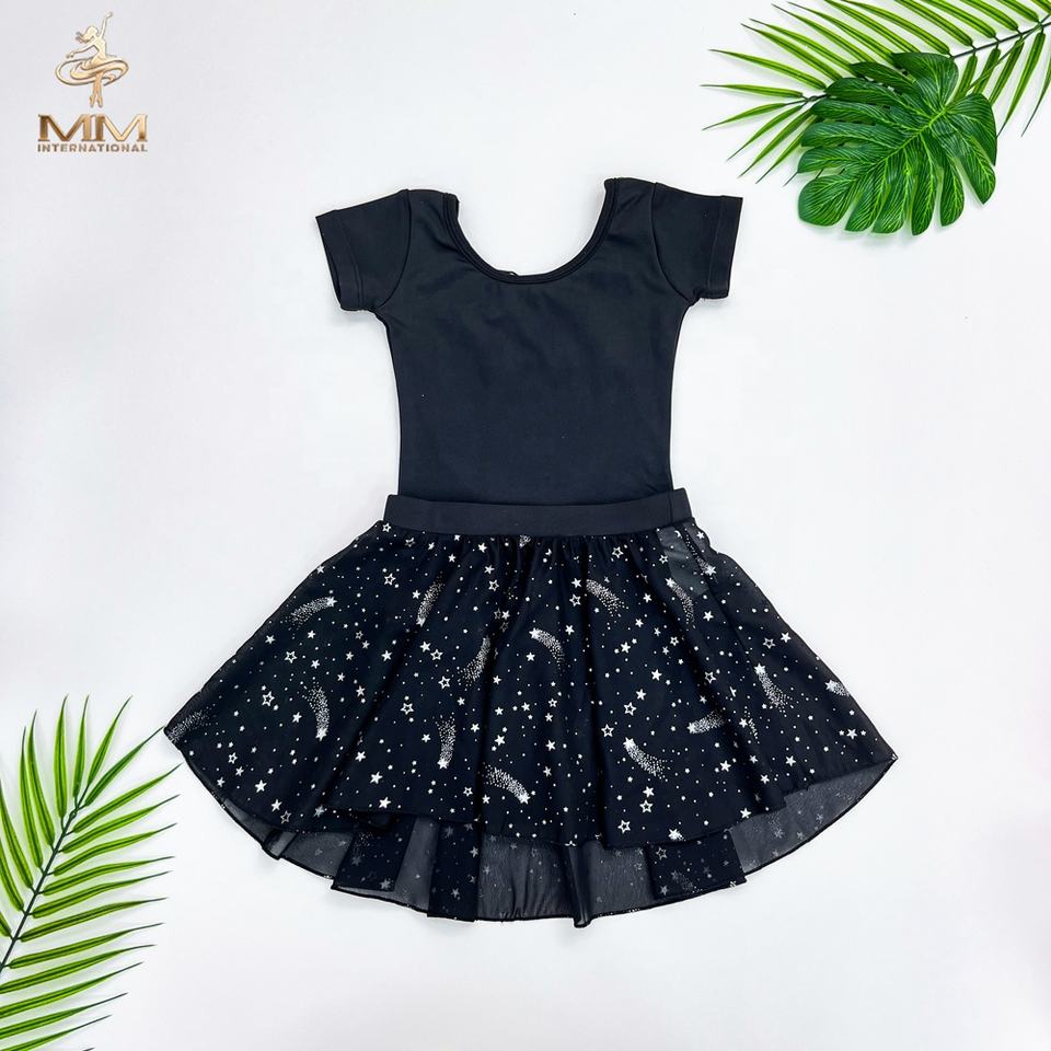 Justaucorps de ballet à manches courtes pour filles avec robe détachable, imprimé étoiles argentées, costume de danse pour enfants, vêtements de danse en spandex et polyester
