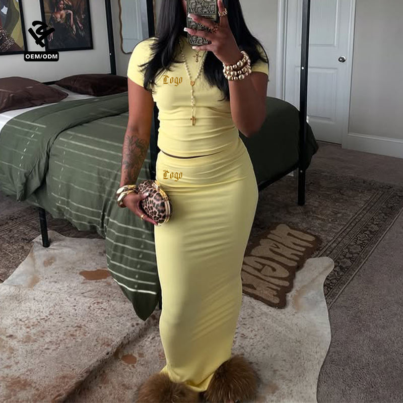 Ensemble jupe d'été, ensemble deux pièces, vêtements pour femmes, robe longue moulante, ensembles de robes, t-shirt à manches courtes, tenue féminine pour les fêtes, streetwear