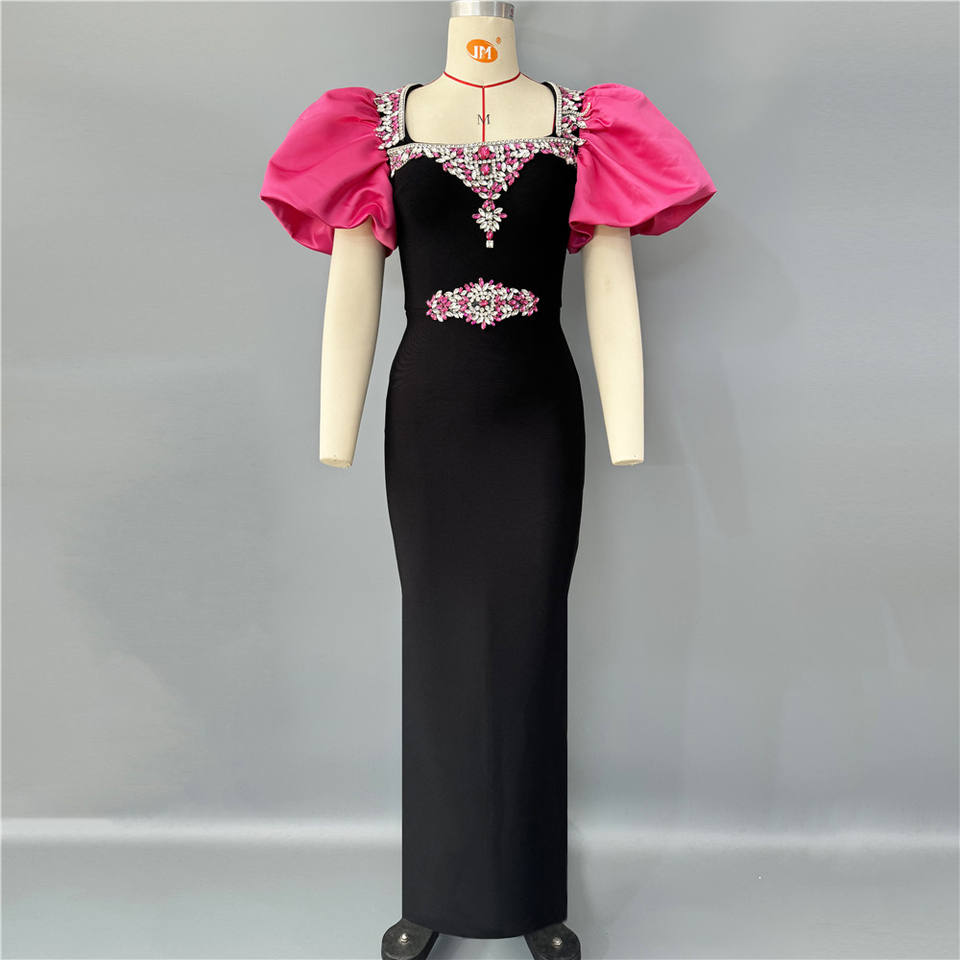 Robe dos nu col vache satin rose peau de serpent Pea Street