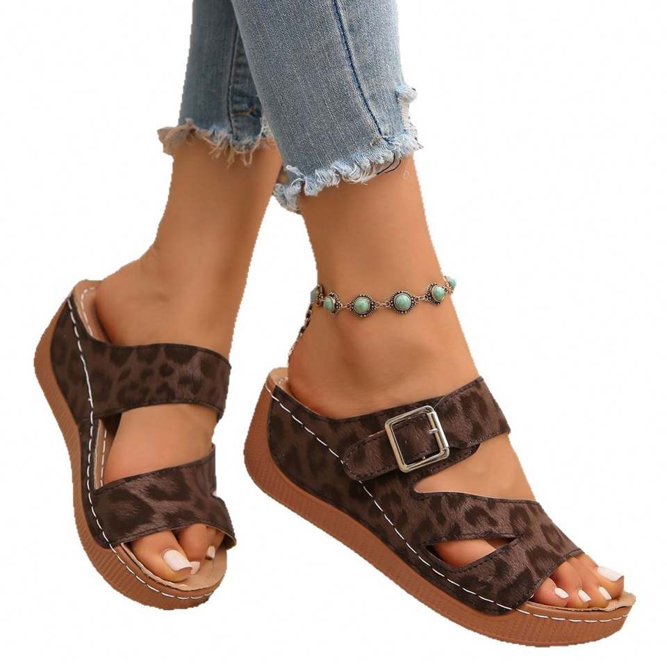 Nouvelles sandales compensées décontractées pour femme, à semelle souple, ouvertes, antidérapantes, pour l'extérieur, printemps-été-automne