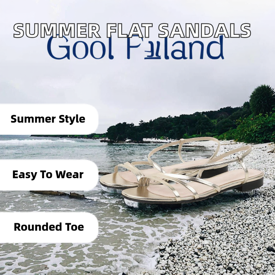 Sandales plates à bout rond pour femmes, design été-printemps, couleur unie, talon bas, style tendance