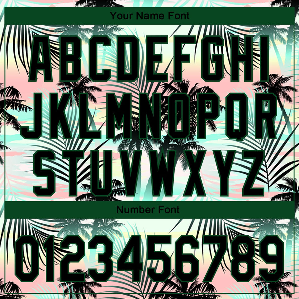 Chemises à poches ajustées en polaire polyester à séchage rapide, motif 3D personnalisé noir et vert, style estival, feuilles de palmier tropicales Hawaï