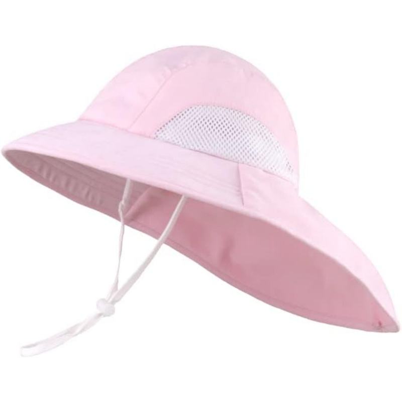Chapeau de soleil d'été avec nœud papillon Chapeaux de protection solaire de plage Chapeaux de seau réglables pour tout-petits enfants bébés et filles (nœud papillon rose rouge)
