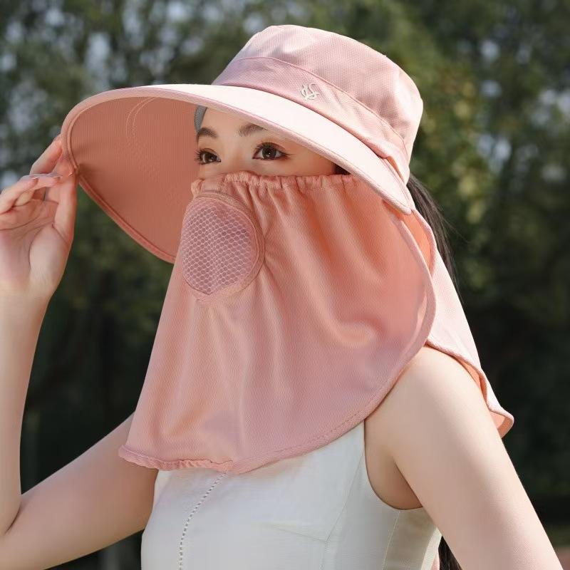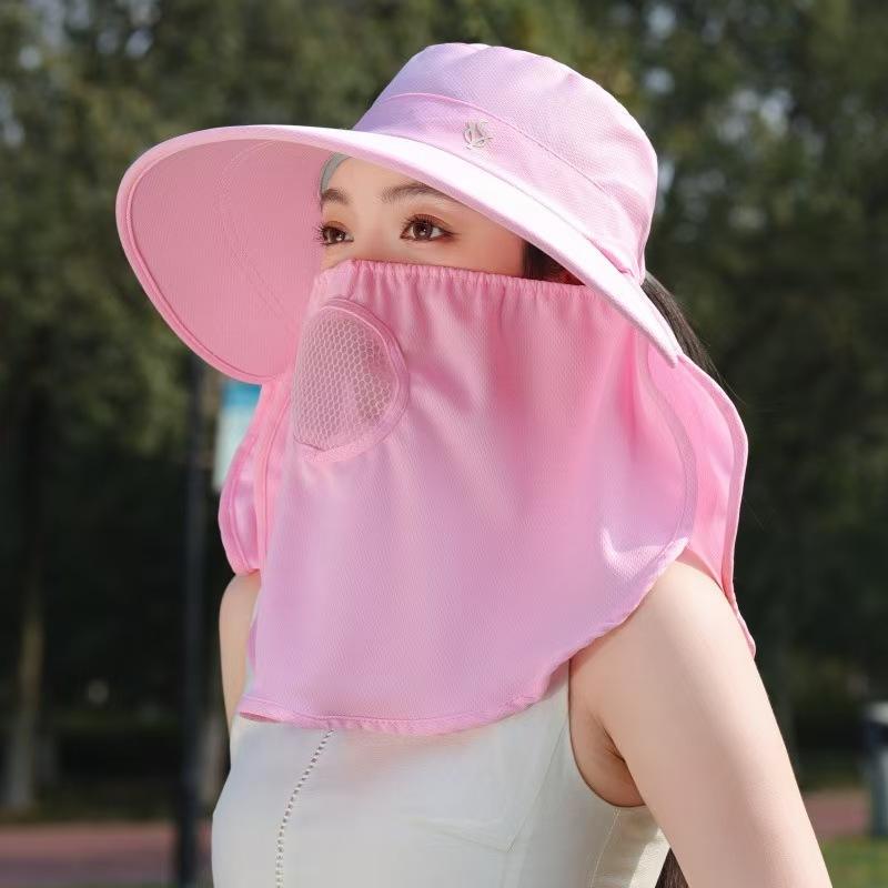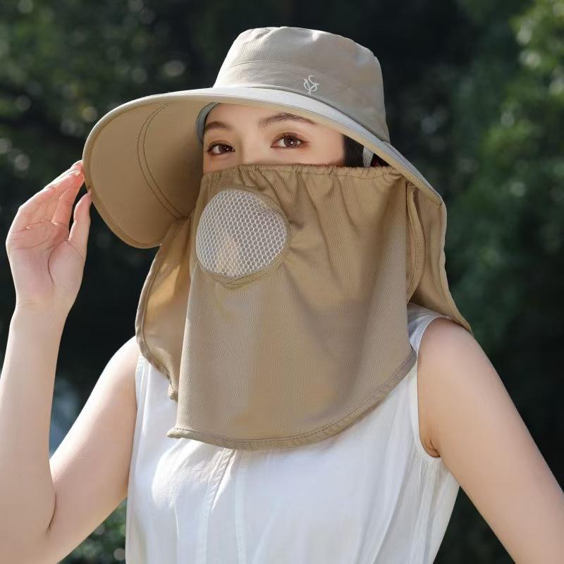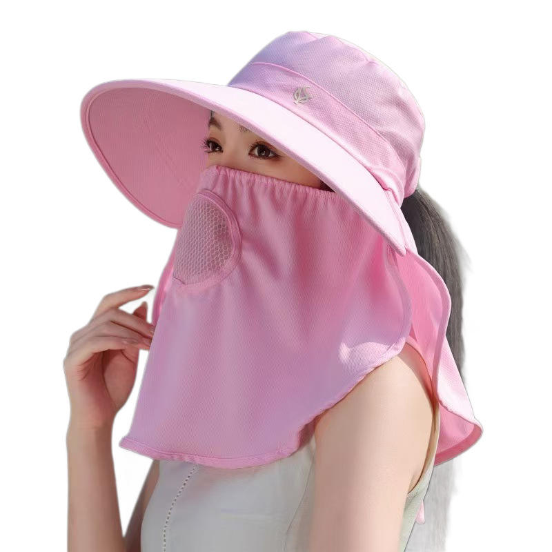 Chapeau de protection solaire d'été pour femmes avec couvre-visage, chapeau de pêcheur respirant, masque facial complet, protection du cou, pour la cueillette du thé en plein air