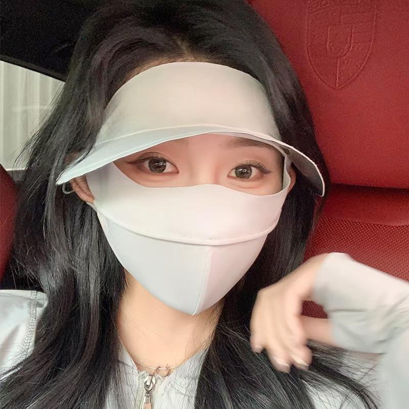Chapeau de protection solaire d'été avec masque intégré en soie glacée, couvre-visage complet, protection UV, respirant, pare-soleil, Facekini en polyester et Lycra