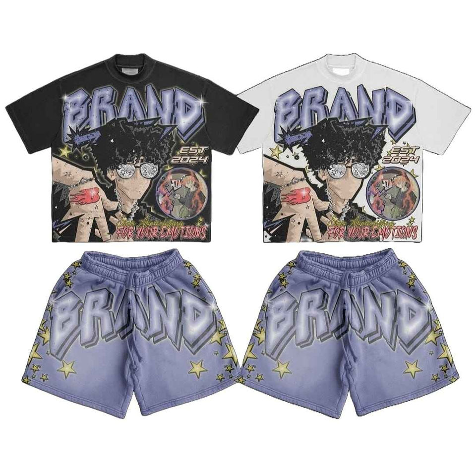 Ensemble court deux pièces pour homme, style streetwear, imprimé personnalisé, 100% coton biologique, écologique, couleur unie, t-shirt et short
