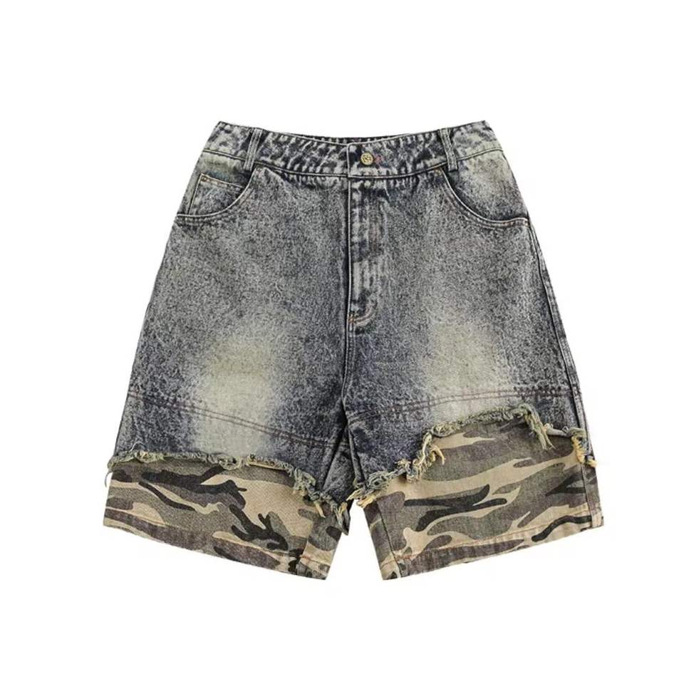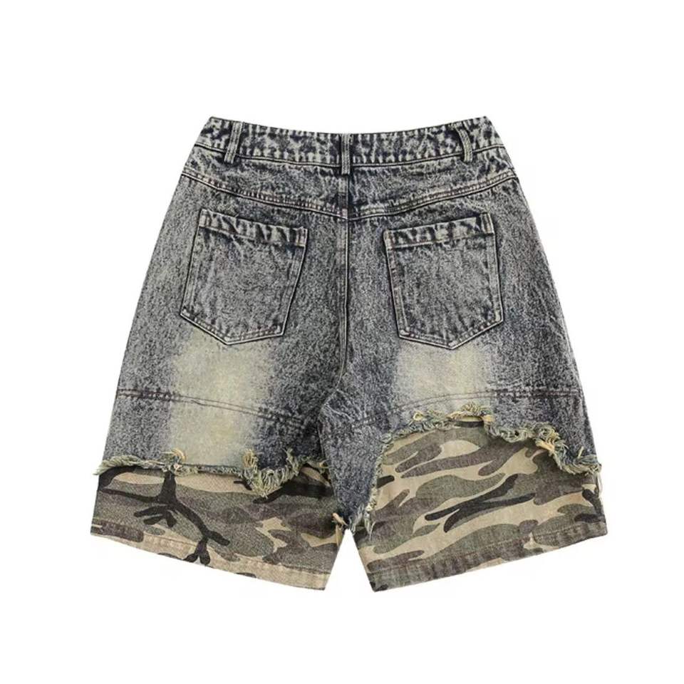 Été Unisexe Hip Hop Ripped Hole Denim Shorts Black Punk Wash Baggy Work Shorts Vintage Raw Edge Casual Denim Jorts