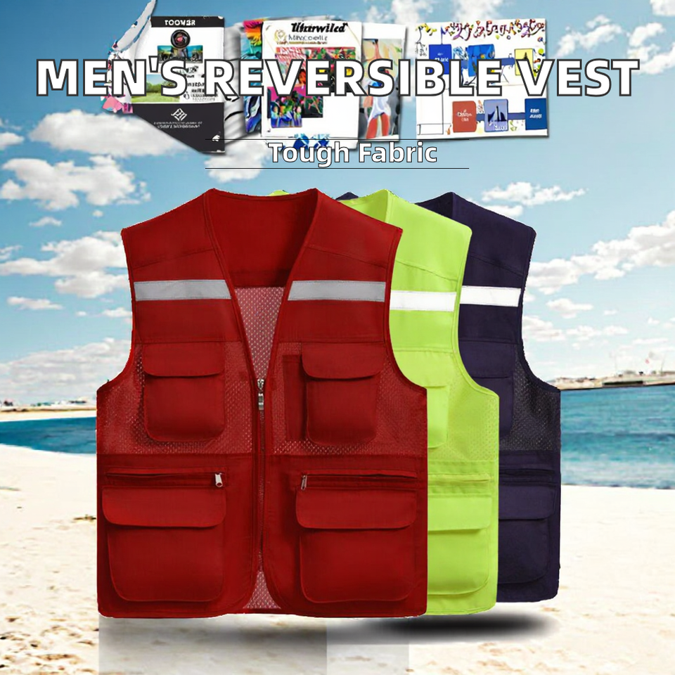 Summer Unisex Reversible Sleeveless Cameraman Photographer Vest Jacket Custom Printed Embroidered Quality Polyester Zipper Men's