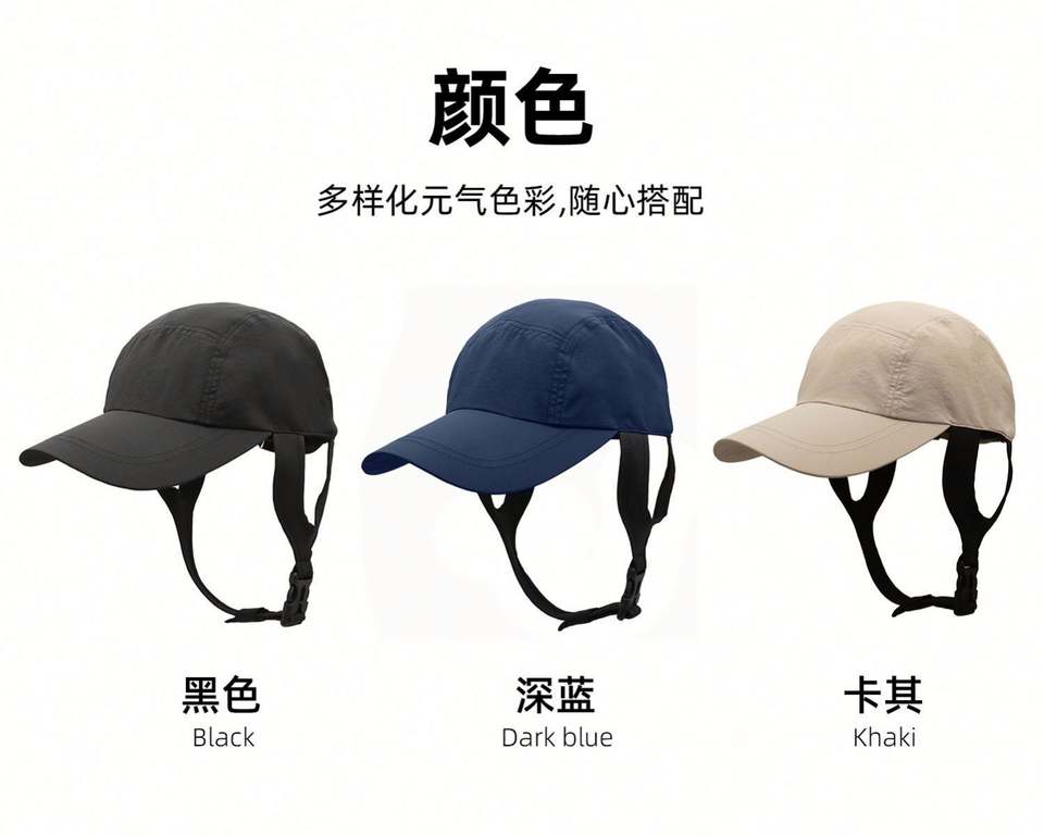 Casquette de baseball imperméable d'été 100% polyester, protection solaire standard, réglable, pour la plage et le surf, avec sangle