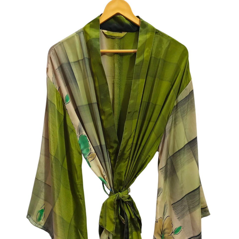 Summer Wear Bathrobe Silk Sari Kimono Vintage Sari Robe Soft Beach Party Gown Indian Handmade Silk Kimono