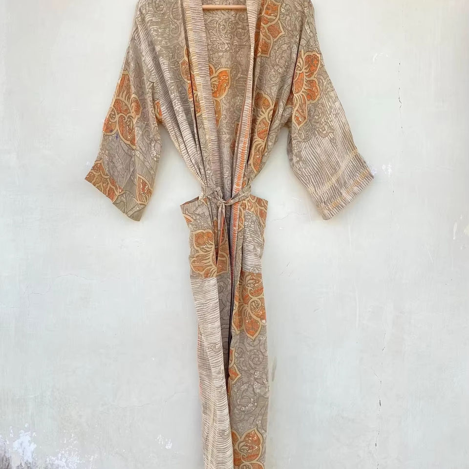 Vintage Indian Silk Robe for Women Summer Autumn Spring Smooth Party Wear Daily Life Style for Nightwear and Sleepwear