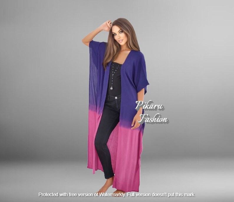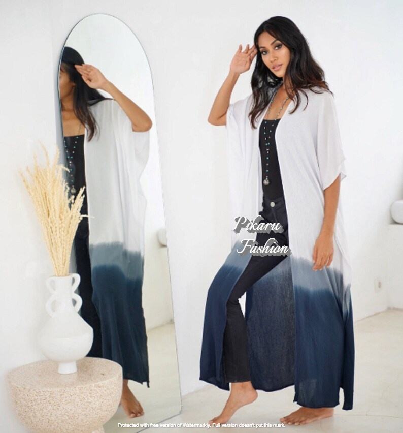 Collection d'été pour femmes Kimono à manches courtes ouvert sur le devant et à double couleur Tie Dye
