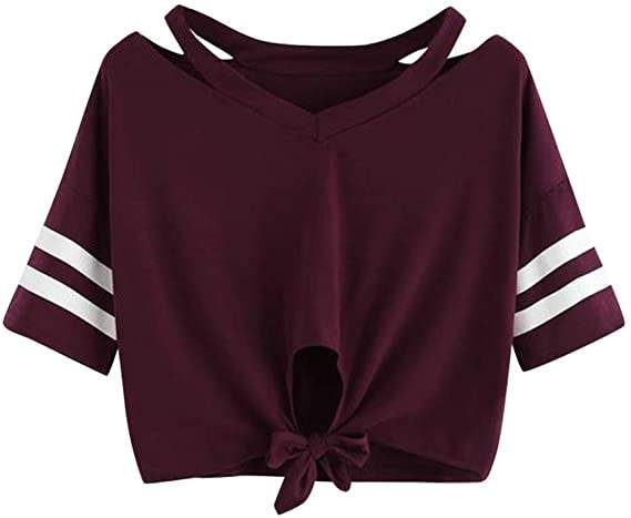 T-shirt court pour femmes, col rond, uni, Slim, à la mode, été, collection 2020