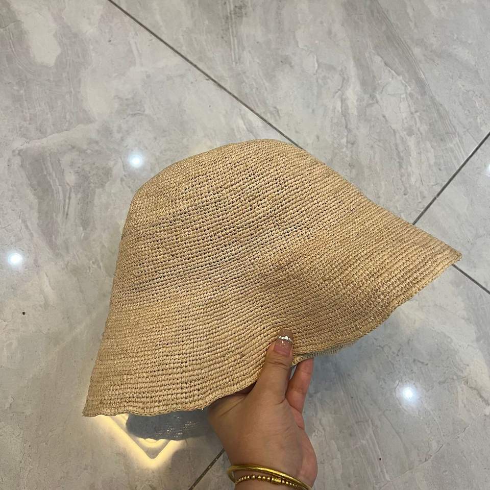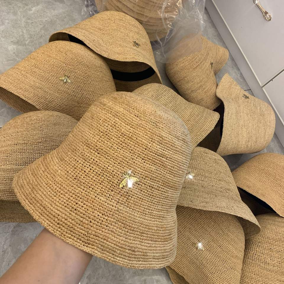 Chapeau Bob en Raphia Fait Main Rayé pour Femme – Protection Solaire Tendance avec Décoration Métallique Chic