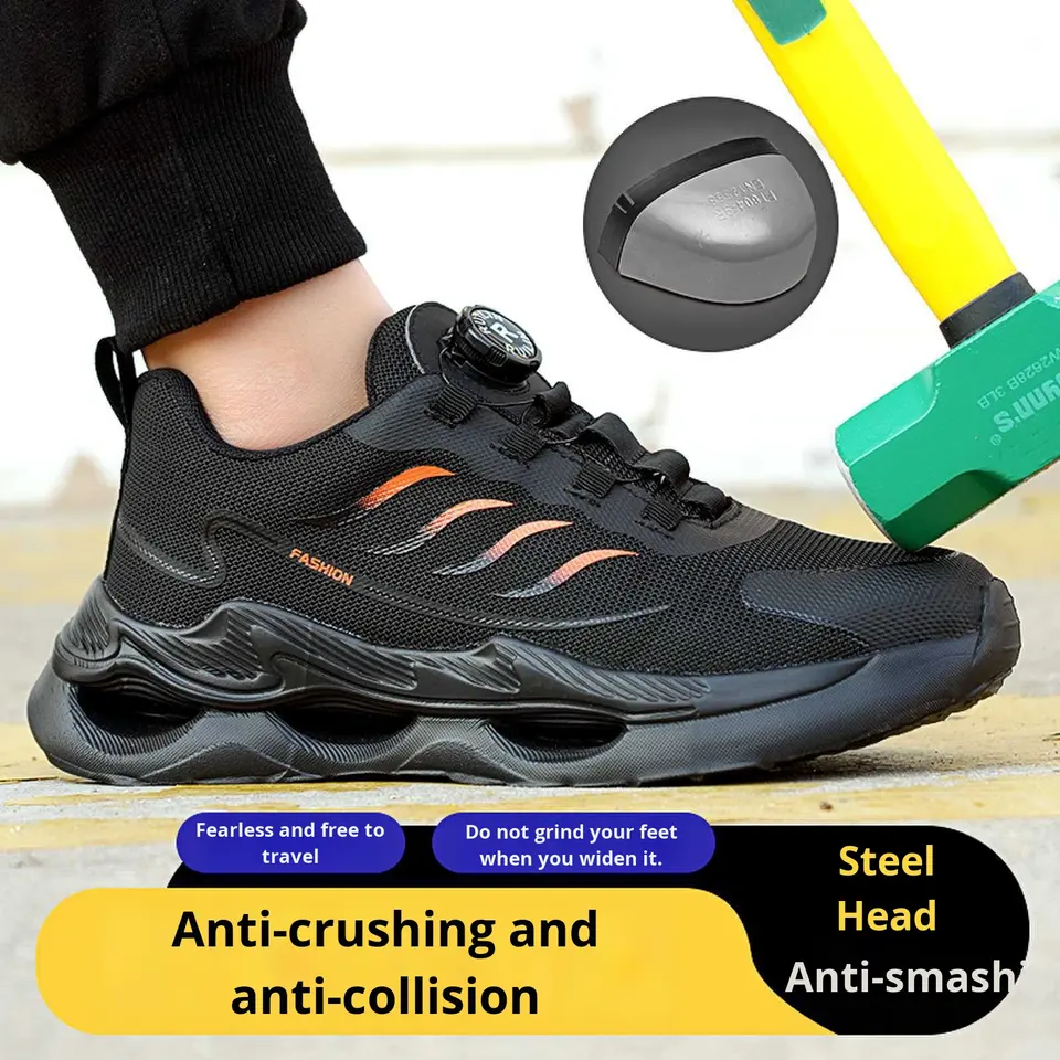 Chaussures de sécurité d'été pour le travail avec bouton rotatif anti-écrasement et anti-crevaison pour usage industriel pour Amazon Four Wear-Resista