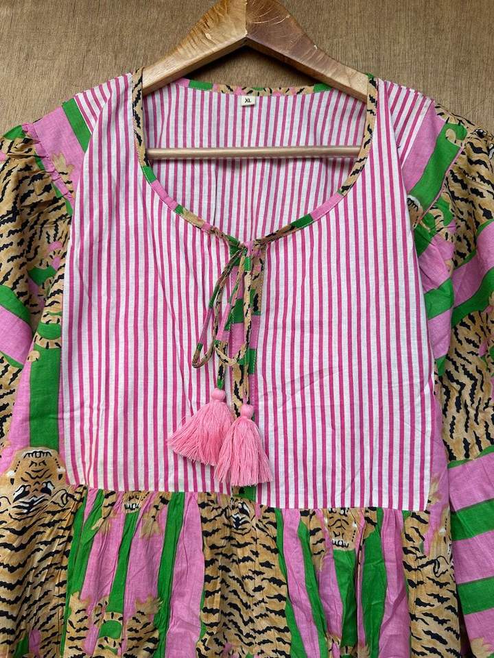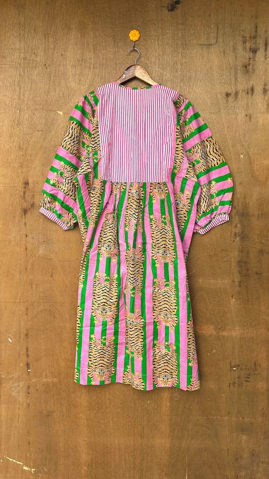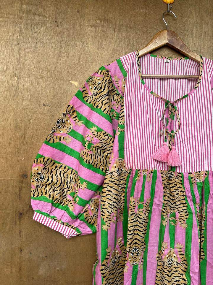 Robe d'été bohème hippie pour femme en coton imprimé, col en V, longueur midi, décontractée, écologique, respirante, manches mi-longues, naturelle