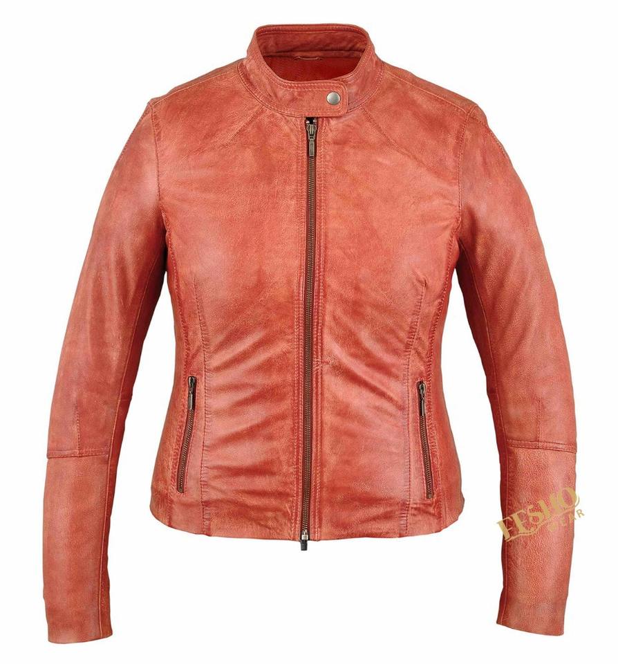 Waxed Women Leather Jacket:Genuine Leather Jacket for ladies