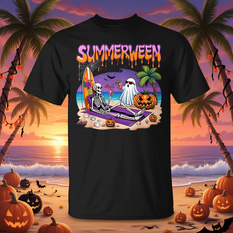 T-shirt d'Halloween effrayant Summerween Skeleton Ghost Beach