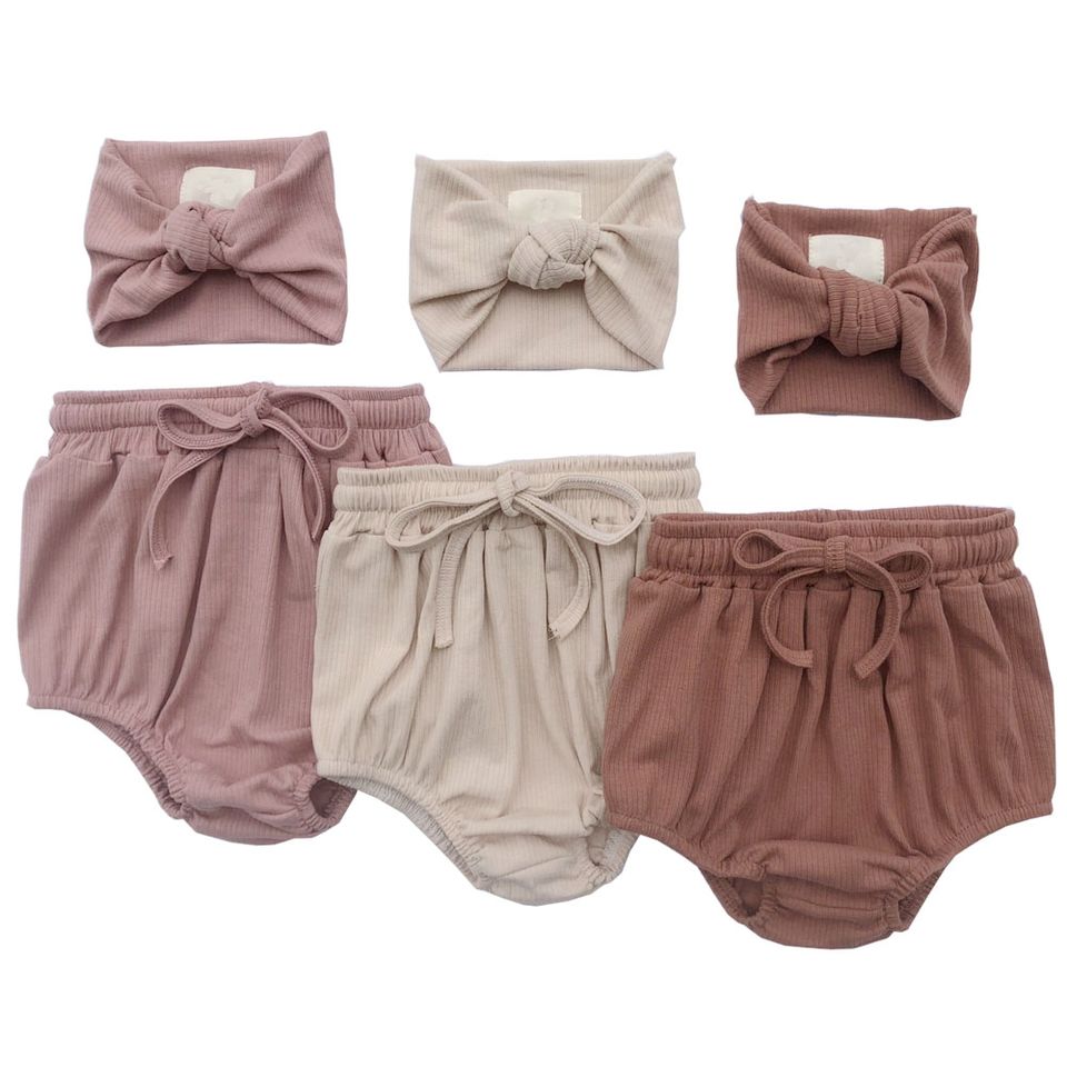 Shorts côtelés en coton pour bébé, doux, avec cordon de serrage, culotte-couche pour filles, avec bandeau