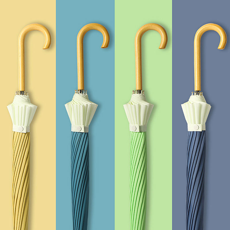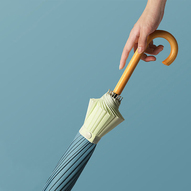 Parapluie classique de voyage, soleil et pluie, taille agrandie, 23 pouces, forme en J, poignée en bois incurvée confortable, protection UV, parapluie droit