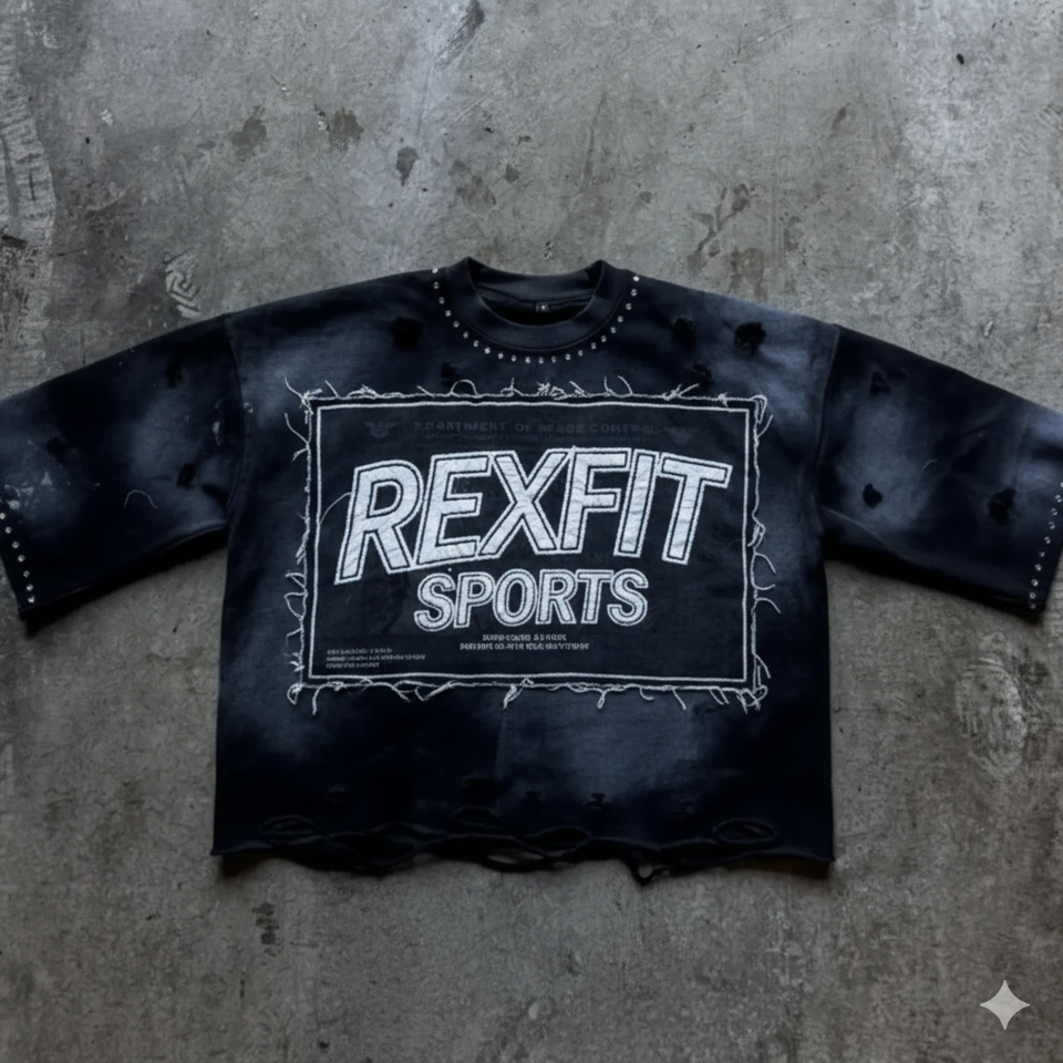 Sun Faded Cropped T Shirts Custom Rhinestones Distressed Embroidery Logo Cut And Sew Best Material Drop Shoulder T Shirts