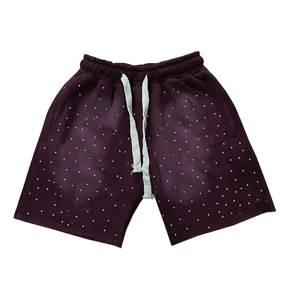 Shorts pour hommes en denim délavé à l'acide avec poche à strass imprimée, nouvelle collection été 2026, séchage rapide, style vintage streetwear