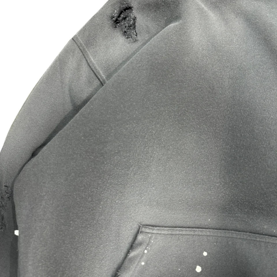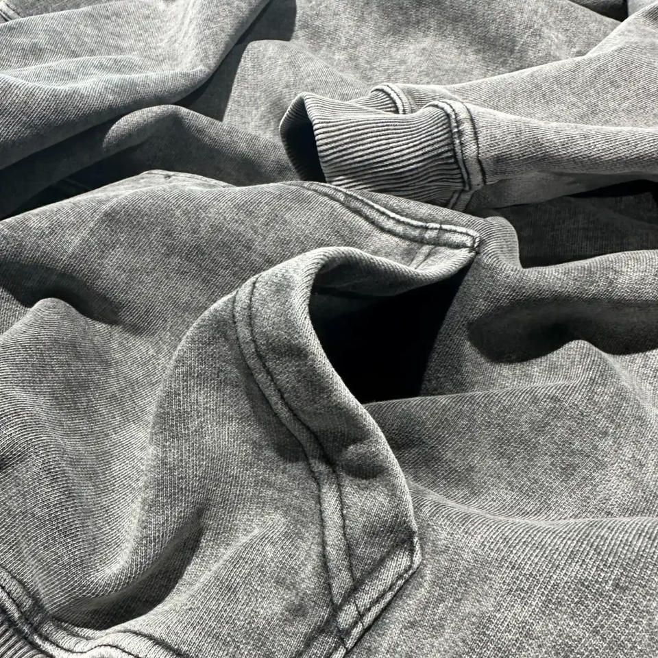 Sweat à capuche noir délavé effet usé, en coton épais, coupe oversize, style streetwear, unisexe, coupe ample, pull universitaire