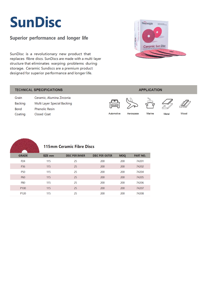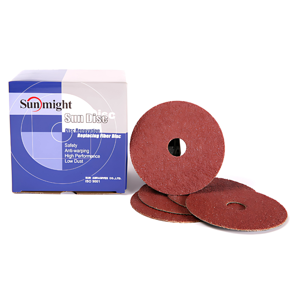 Disque en fibre céramique haute performance Sun Might SunDisc 115 mm, idéal pour le chanfreinage des bords, le conditionnement des surfaces et l'élimination de la rouille