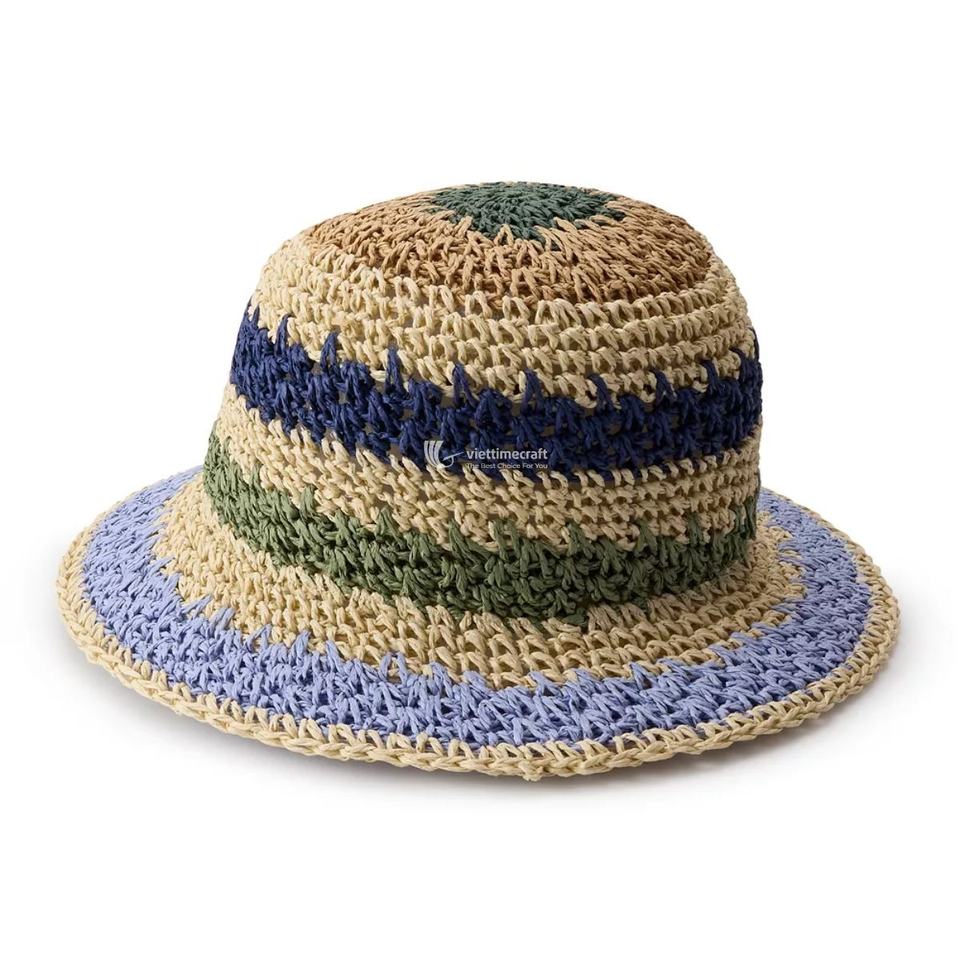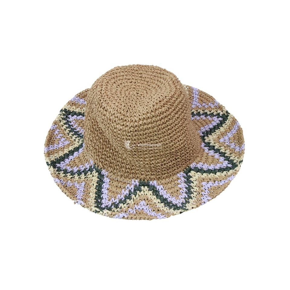 Chapeau de paille bohème anti-UV, bord en crochet, vente en gros d'été, chapeau de paille fait main en gros directement de l'usine