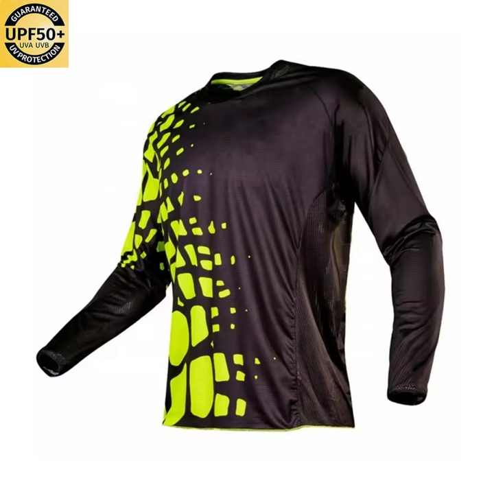Vêtements de protection solaire avec logo personnalisé, chemise à manches longues respirante, séchage rapide, UPF 50, polyester durable, pour la moto et les courses automobiles