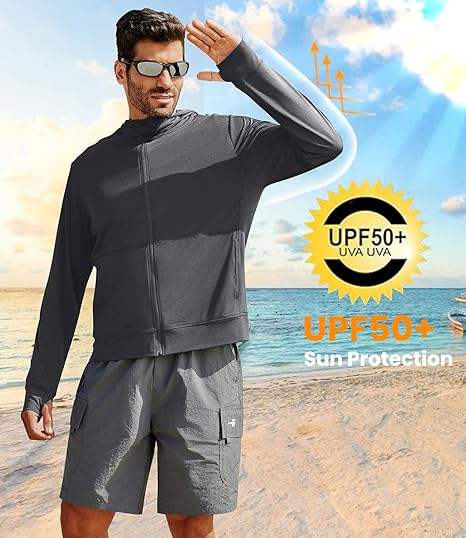Veste à capuche de protection solaire Chemises UV légères à manches longues pour hommes Randonnée Pêche