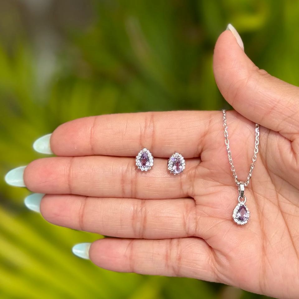 Size:Amethyst - 9x6 mm, CZ - 1 mm