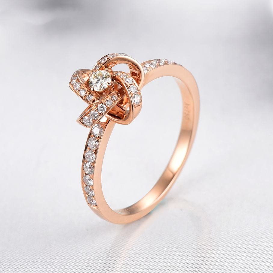 Bague en diamant naturel Sun Star Design, 3 grammes, or rose 18 carats, bague de fiançailles pour femme, bague de mariage