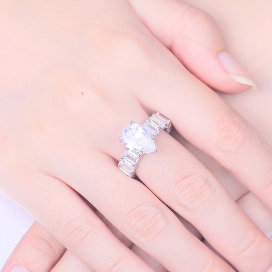 Sun Star TL-407 New Arrival Wholesale Women's Engagement Rhodium Plated Pear Cut CZ Big Zirconia Ring CMA Certified