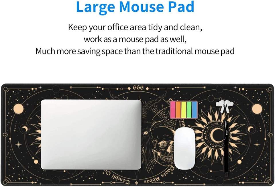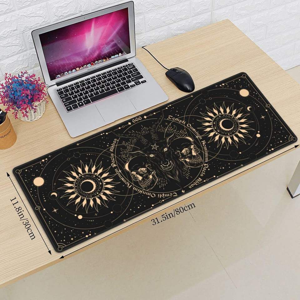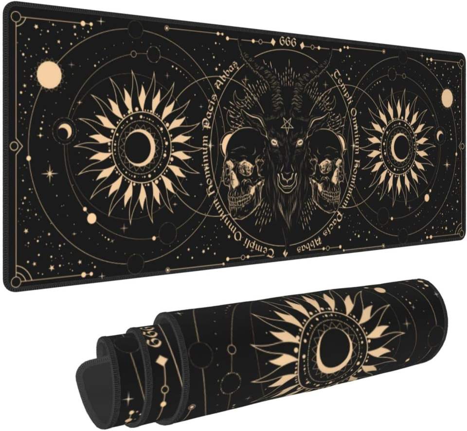 Tapis de souris extensible grand format Sun and Moon Gothic Skull Goat, tapis de souris de jeu XL surdimensionné, tapis de bureau surdimensionné, bords cousus, 31,5 x 11,8 pouces
