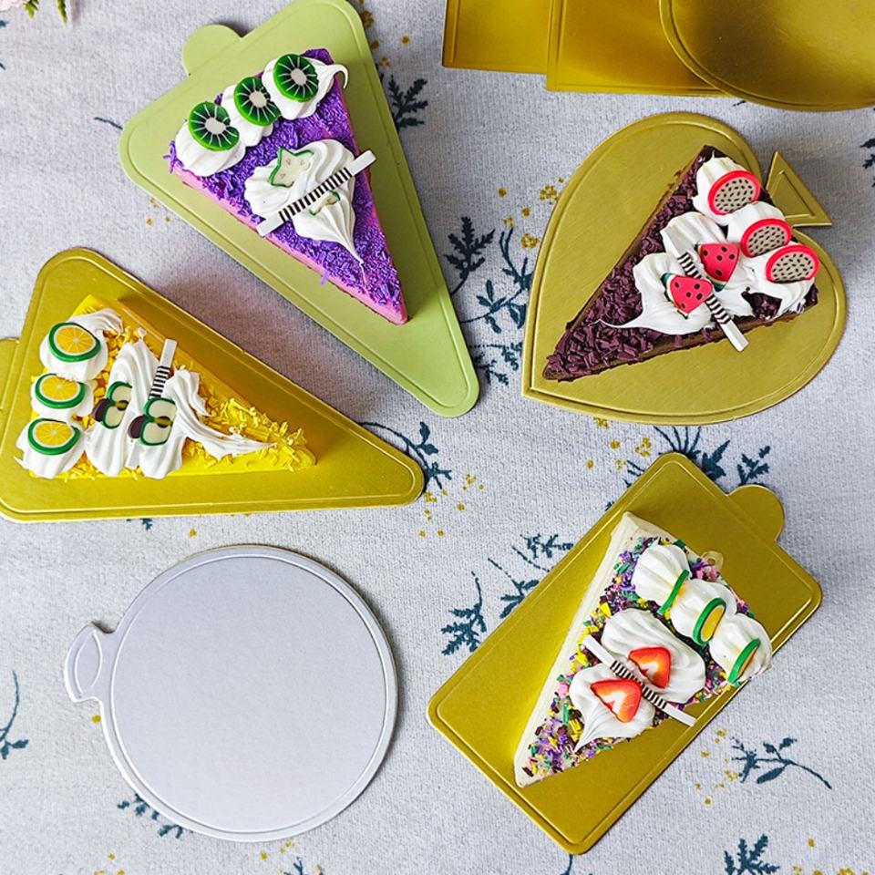 SunShine Meilleures ventes : Plateau en carton doré mini triangulaire pour gâteaux et muffins, avec poignée, résistant à la graisse