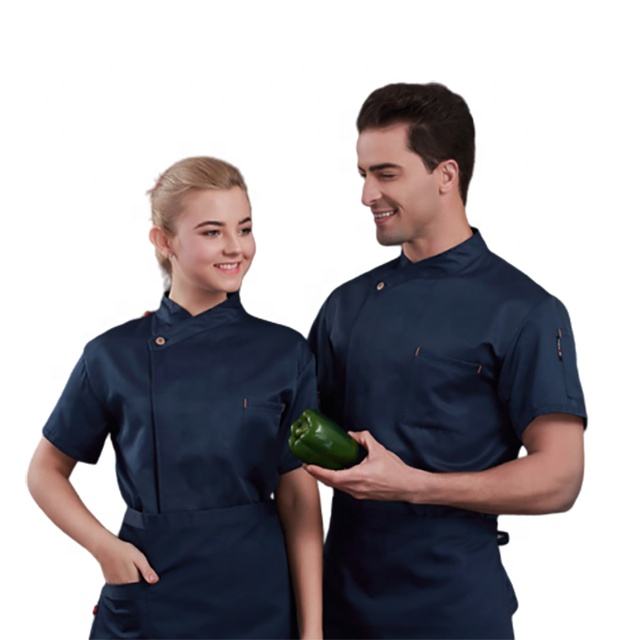 Veste de chef unisexe respirante en coton mélangé SunYue, manches courtes, logo personnalisé, uniforme de cuisine, restaurant et bar