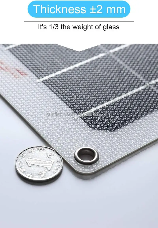 Sunfield Chargeur d'énergie solaire monocristallin Revêtement ETFE solaire 20W 18V Panneaux solaires flexibles 12V Panneau solaire pour charge de voiture EV