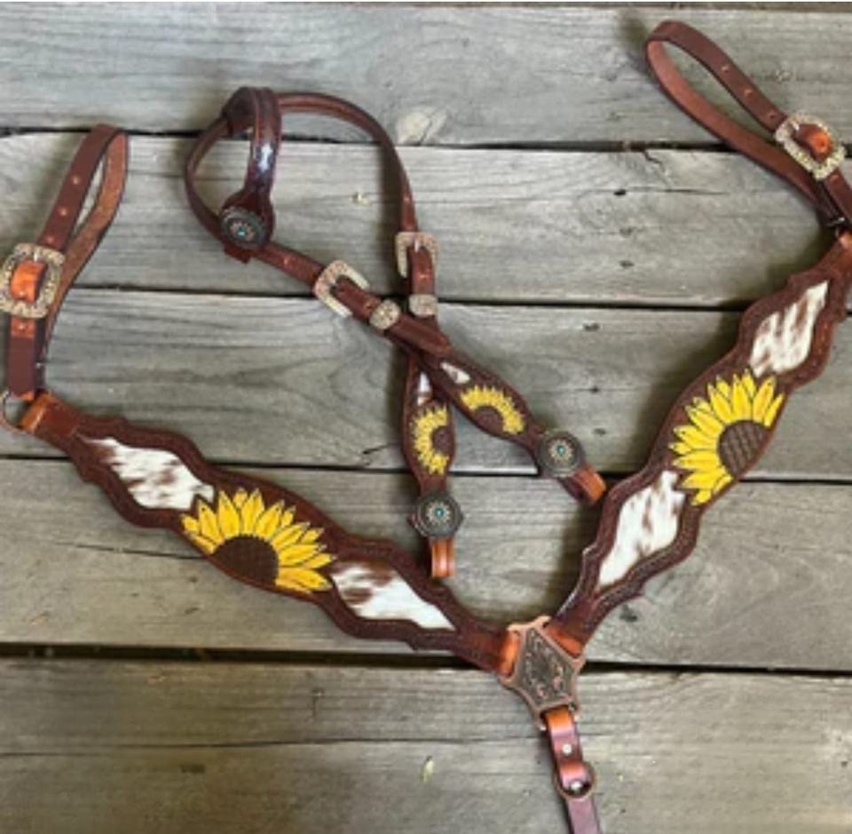 Sunflower Genuine Leather Horse Tack Set Lightweight Cowhide Includes English Saddle Breast Plate Saddles for Seasonal Western