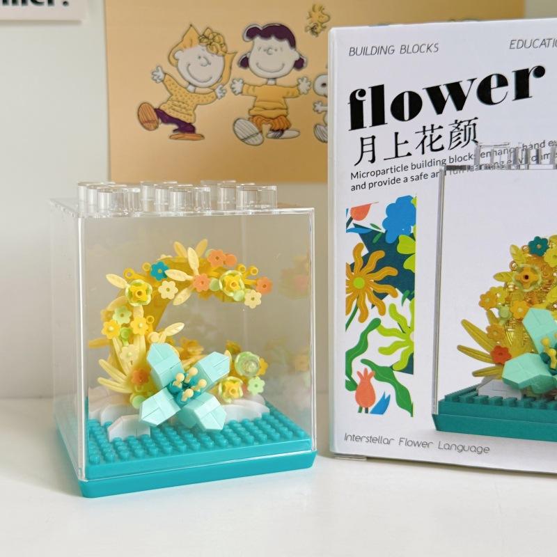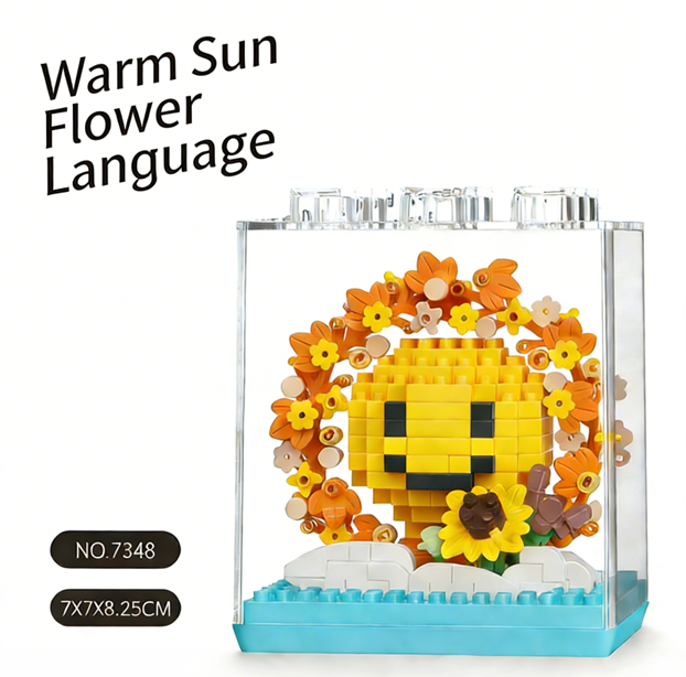 Kit de briques visage souriant tournesol | Vitrine transparente | Bricolage créatif pour enfants et amateurs de positivité