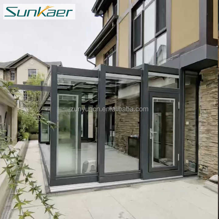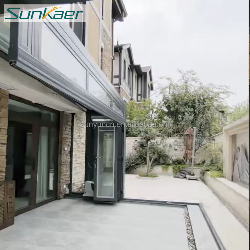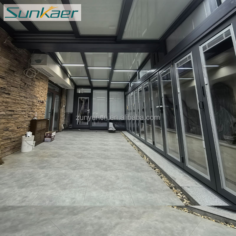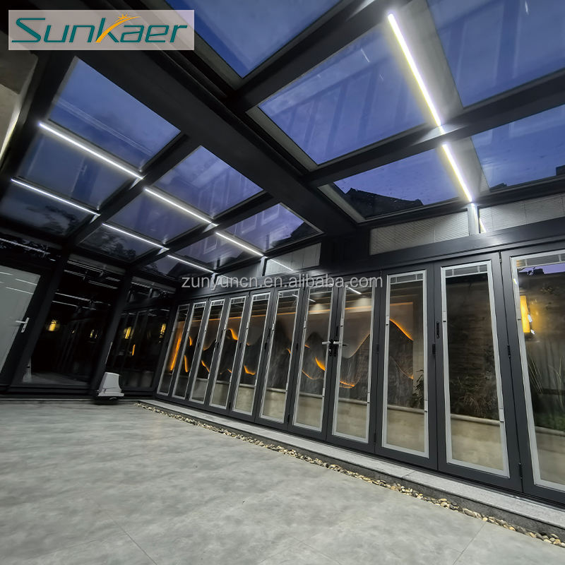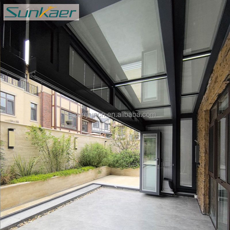 Sunkaer Enceinte coulissante en verre rétractable automatique pour jardin extérieur, piscine ou villa, véranda, couverture de toit, moulage plat dans le sol