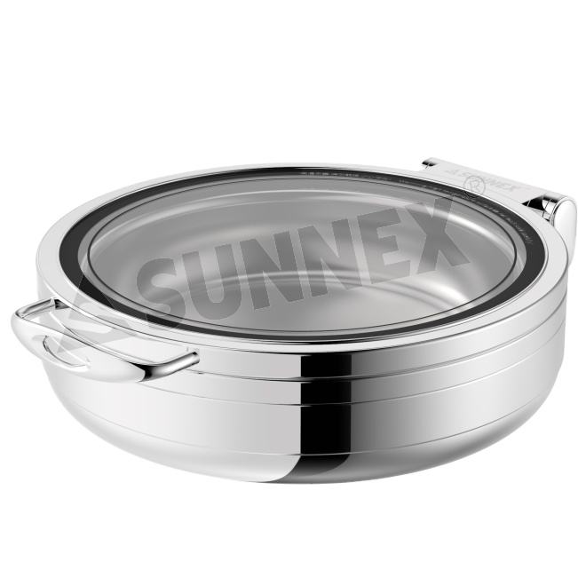 Sunnex Economy Round Stainless Steel Chafing Dish Food Warmer 6.8L Mirror Polished for Hotel & Restaurant Buffet Serving