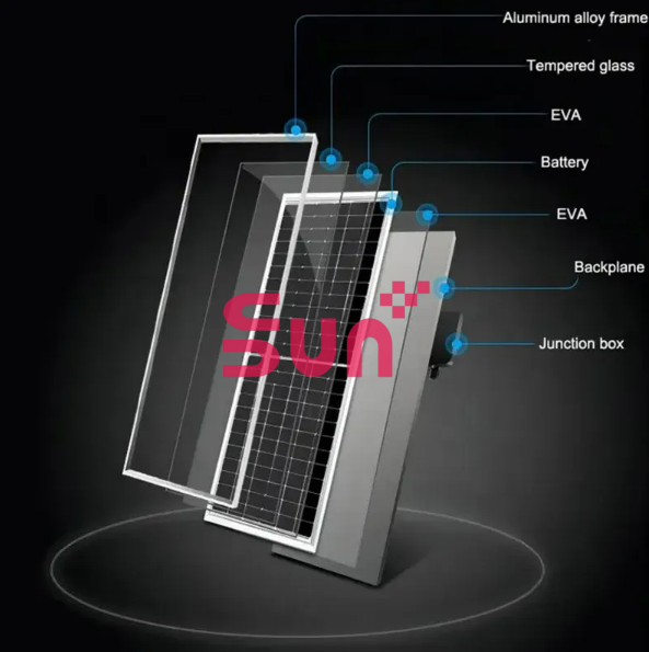 Panneau solaire bifacial Sunplus haute efficacité 445W, entièrement noir, type N, double vitrage, 23,8% d'efficacité, certifié CSA TUV CE