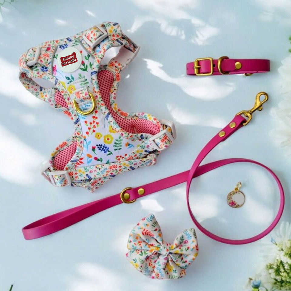 Harnais réglable pour chien Sunraymascota, ensemble personnalisable, vente en gros de harnais pour animaux de compagnie avec colliers design pour chiots et chiens actifs