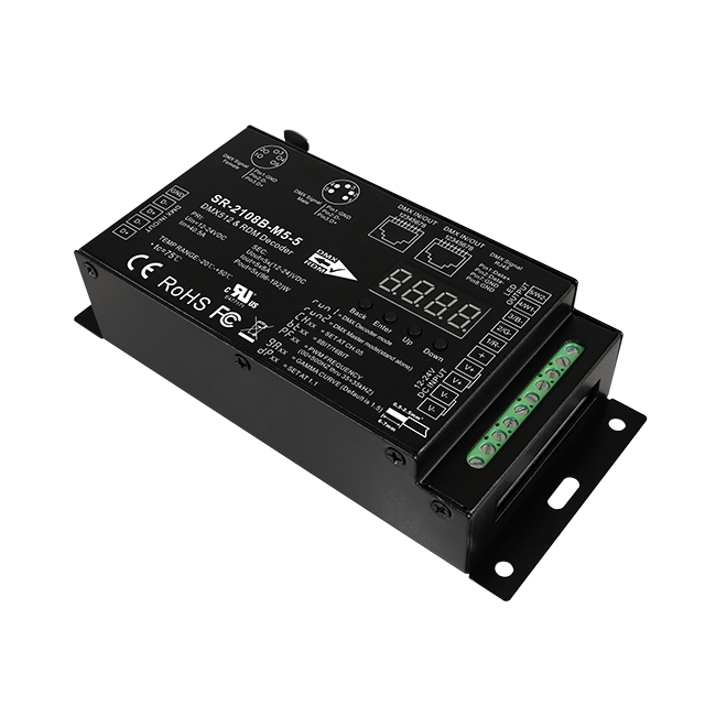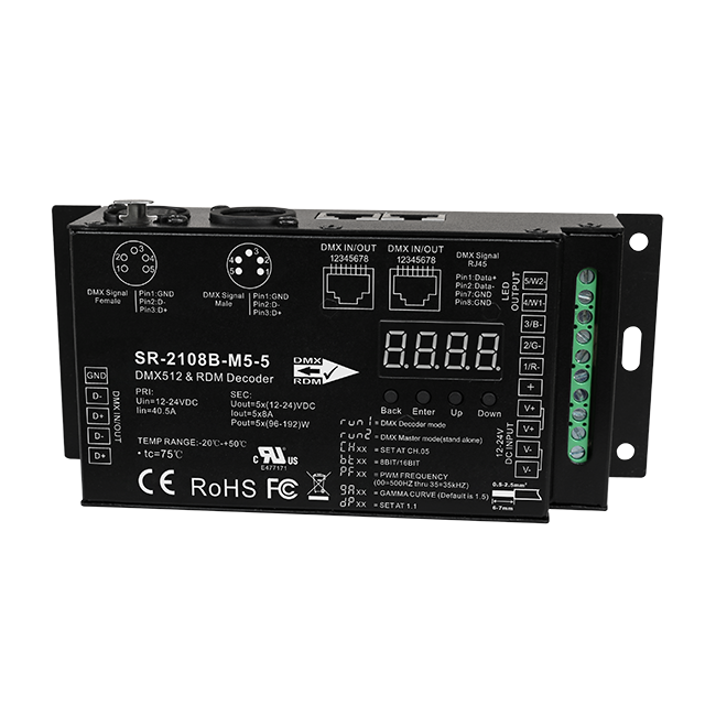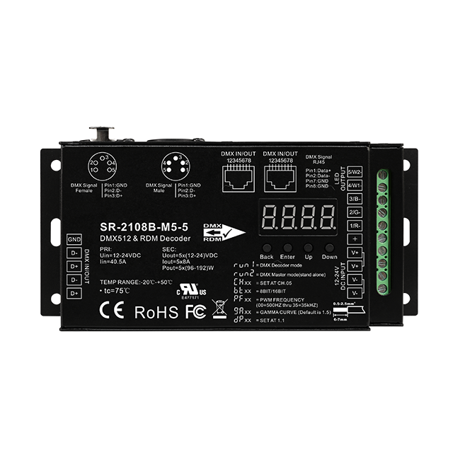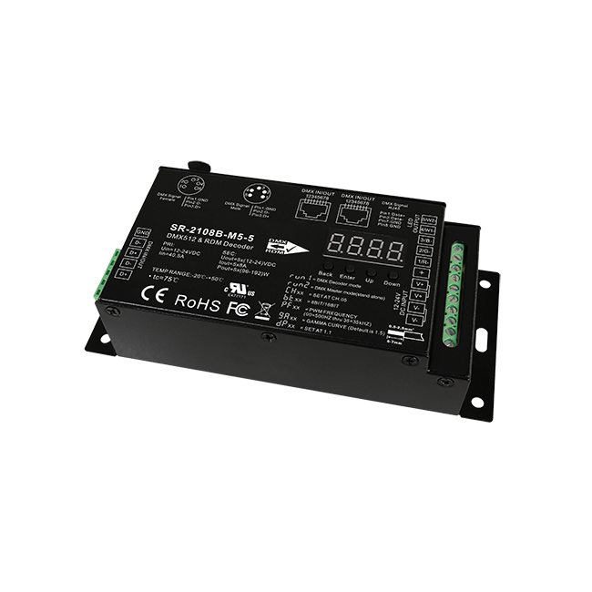 Décodeur DMX RDM CV Sunricher 5CH - Fréquence PWM 35KHZ, Protection contre les courts-circuits, 8A/CH, Port RJ45, 5 broches/3 broches pour le cinéma et le film