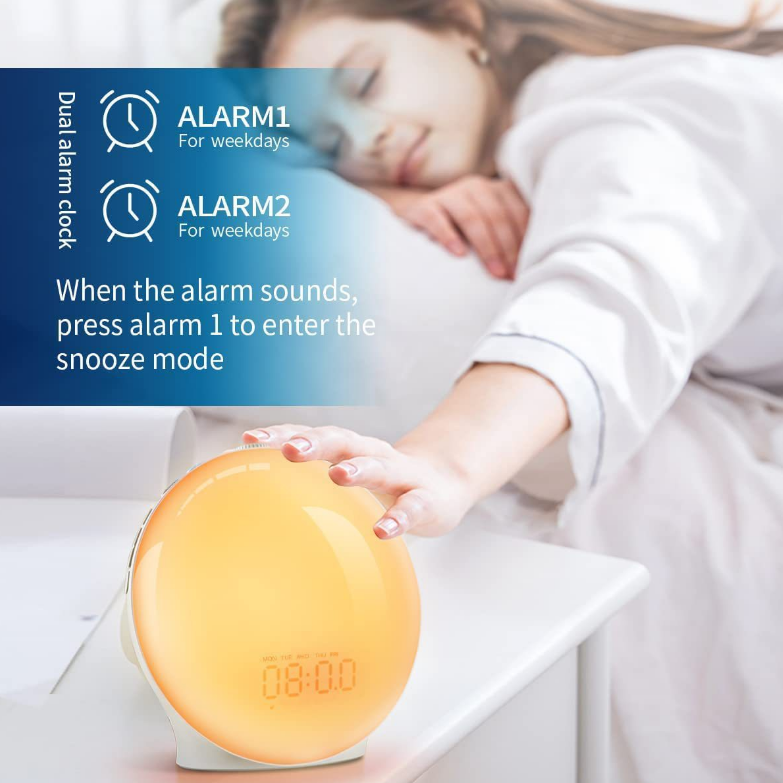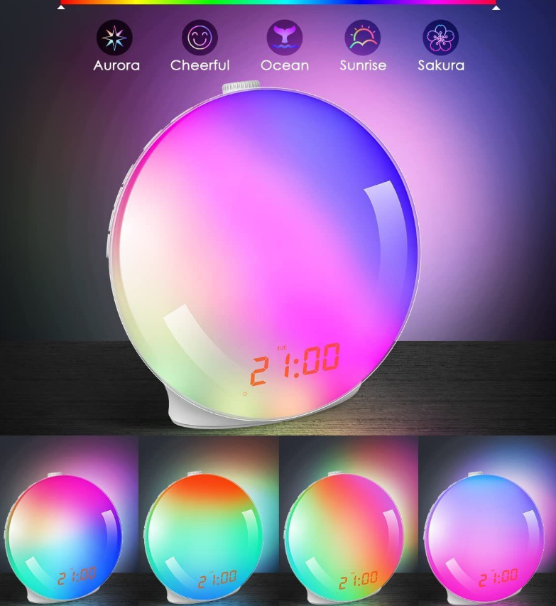 Réveil numérique avec fonction Snooze, lumière d'ambiance 7 couleurs, veilleuse, réveil matinal
