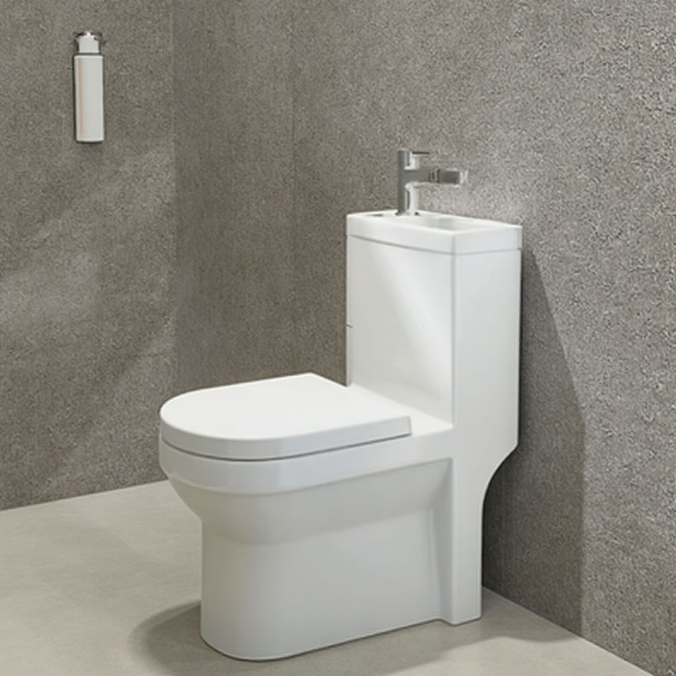 Sunrise Inodoro avec lavabo intégré, combinaison WC et lavabo gain de place, trois en un, siphon en P, pour hôtels et villas